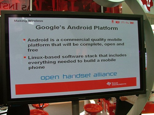 Google unveiled features of the Android operating system on an unidentified black HTC handset at a developers conference in London on Wednesday.